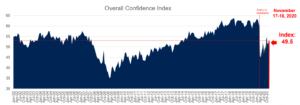 If your sales are slowing into year end, you will not be alone. This report froom IPSOS indicates that the consumer sentiment index post-election is down almost 4 points to 49.5 (and 10 points below May 2020). 23% of consumers plan on spending a lot less and 26% a little less than last year. Even higher income consumers are planning to cut back with 43% of those households planning on spending less this holiday season vs. last.