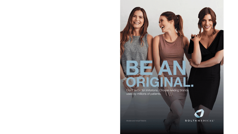 183 partnered with the new Solta team to revitalize the brand with new focus, investment and a campaign that reminded the market of Solta’s historical leadership and promise of benefits today and in the future. The Be an Original campaign was launched in key journals with distinctive and original photography. Solta leveraged the campaign to grow at 10X category growth.